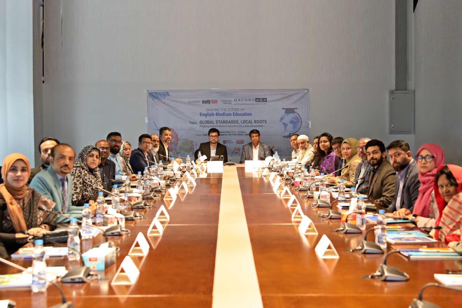 ডেইলি সানের উদ্যোগে “Global Standards, Local Roots: Adapting English-Medium Education for a New Bangladesh” শীর্ষক একটি তাৎপর্যপূর্ণ রাউন্ড টেবিল অনুষ্ঠিত হয়েছে। ইন্টারন্যাশনাল এক্সাম বোর্ড OxfordAQA, এডুকেশন কনসালটেন্সি NWC এবং Brit Academy London-এর যৌথ পার্টনারশিপে ডেইলি সানের নিজস্ব কার্যালয়ে এ আয়োজন সম্পন্ন হয়।