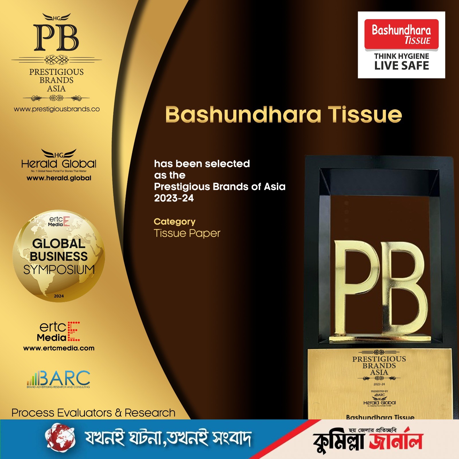দেশের শীর্ষস্থানীয় শিল্পগোষ্ঠী বসুন্ধরা গ্রুপের খ্যাতনামা ব্র্যান্ড বসুন্ধরা টিস্যু ‘প্রেস্টিজিয়াস ব্র্যান্ড অব এশিয়া ২০২৩-২৪’ অ্যাওয়ার্ড জিতেছে। দুবাইয়ের হিলটন হোটেলে গ্লোবাল বিজনেস সিম্পোজিয়াম ২০২৪-এ সম্মানসূচক পুরস্কারটি পায় বসুন্ধরা টিস্যু।