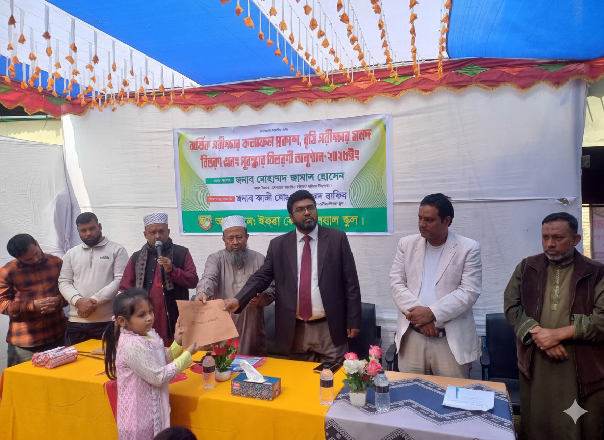 ইকরা রেসিডেন্সিয়াল স্কুলের উদ্যোগে বার্ষিক পরীক্ষার ফলাফল প্রকাশ, বৃত্তি পরীক্ষার সনদ বিতরণ ও পুরস্কার বিতরণী অনুষ্ঠান-২০২৫ অনুষ্ঠিত হয়েছে।